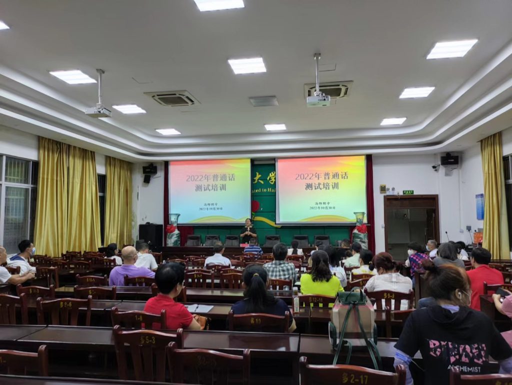语言文字是文化传承的载体,是国家繁荣发展的根基。普通话是教师的职业语言,为提升韩国a片 教职工普通话水平,持续营造说普通话、写规范字的浓厚氛围,10月30日晚上,韩国a片 举行教职工普通话测试考前培训。海南中学语文高级教师、海南省语言文字评估专家、国家级普通话测试员、省级普通话测试员张秀玲老师担任主讲教师,近70名教职工参加培训。