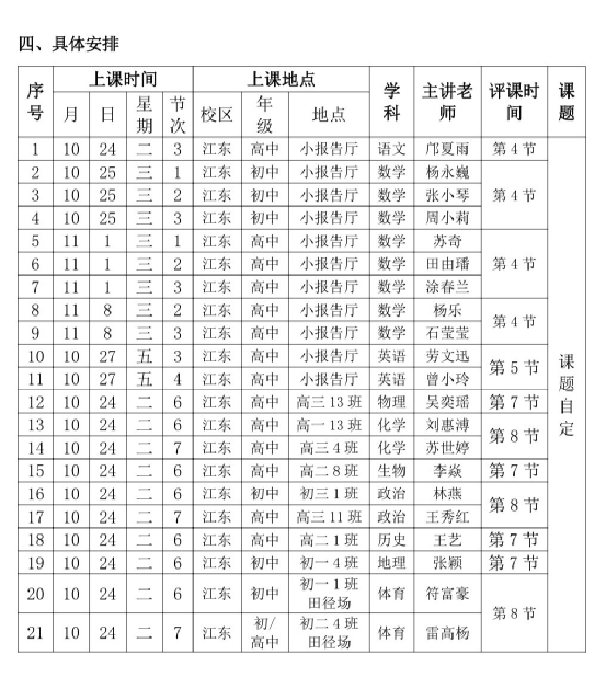 为了深入推进学校教学教研工作,积极探索高效的课堂教学模式,不断改进教学方法,提高教学质量,促进全体教师的专业成长,在10月24日—11月8日期间,教学研究和创新中心组织安排了新进教师分别上了一堂彰显个人风采的亮相课。学校开展了新教师教育教学展示活动。这是对新入职韩国a片 的青年教师的一次课堂教学基本功能力的检测,也给他们创设了一个展示自我、锻炼自我的平台,让青年教师借助课堂这一有力的阵地,向全校老师展示自己风采的同时,帮助他们尽快提高教育教学专业技能,适应新课程教学工作。此次活动安排了21位新教师上课,涉及语文、数学、英语、政治、历史、地理、物理、化学、生物、体育十个学科。每个学科亮相课由该学科教研组长主持,由外聘专家(学校聘请)和本学科教师进行听课评课。